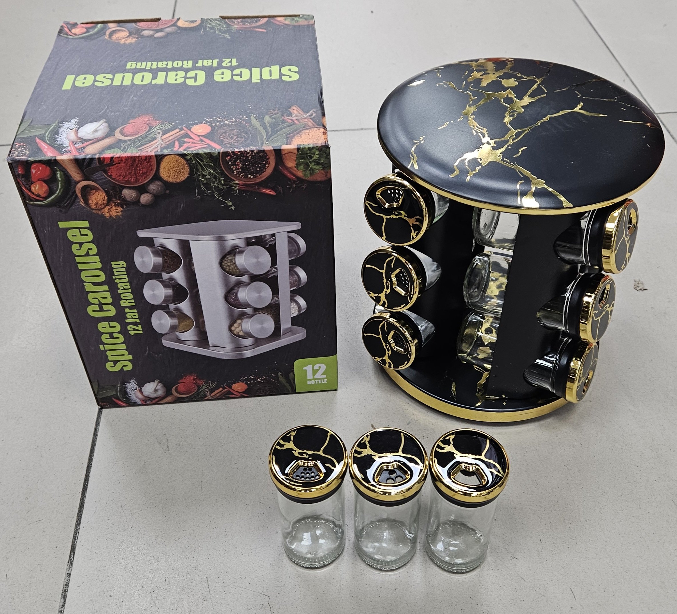 Caroussel à épices 12pcs noir/marbré