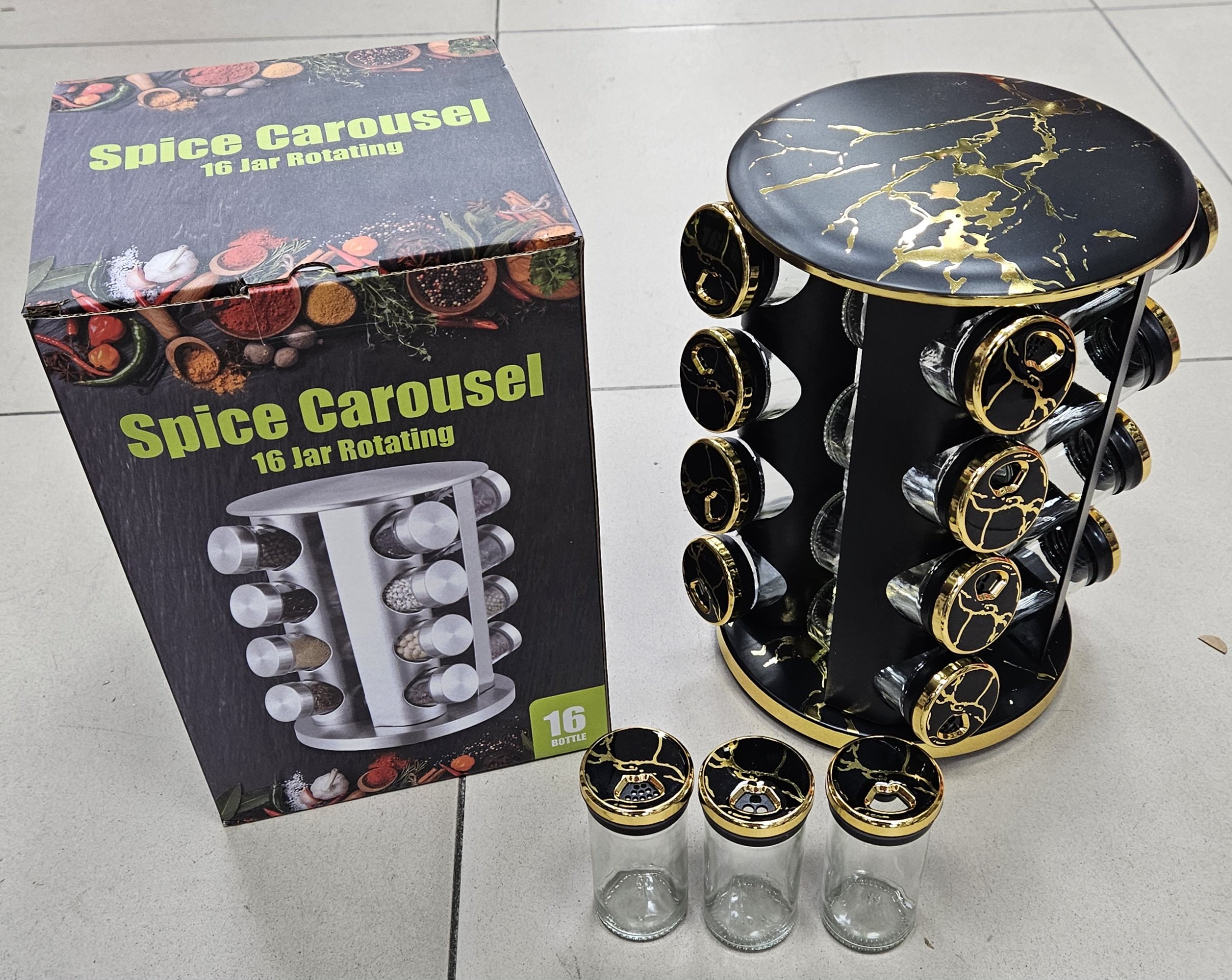 Caroussel à épices 16pcs Noir/marbré